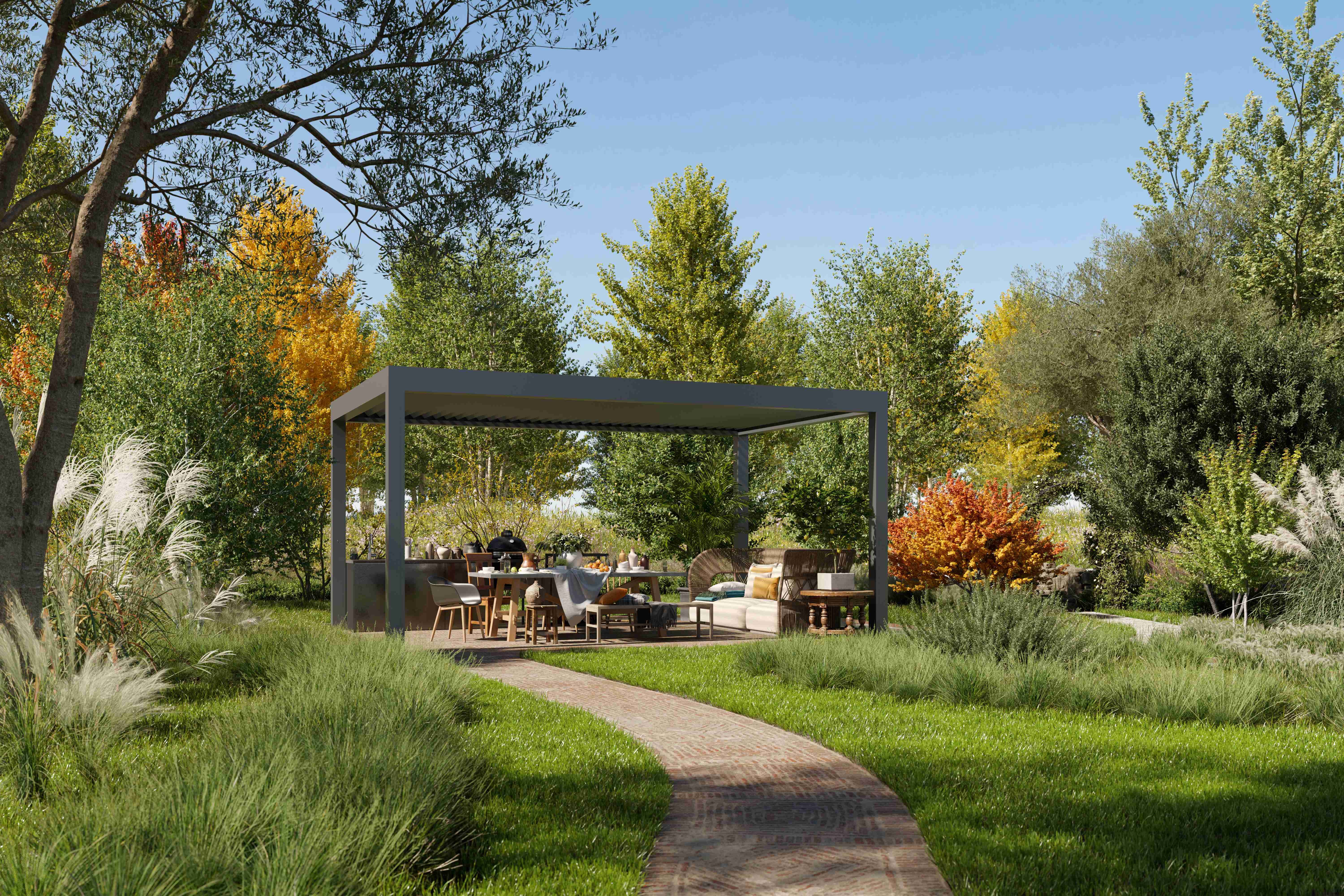 Met de Divara kunnen uw klanten het hele jaar door optimaal genieten van hun buitenruimte. Deze luxe designzonwering biedt de mogelijkheid om te spelen met licht en lucht, waardoor de tuin een plek van rust én vermaak wordt. Het is de perfecte setting voor gezellige bijeenkomsten met familie en vrienden, waar het buitenleven wordt omarmd.